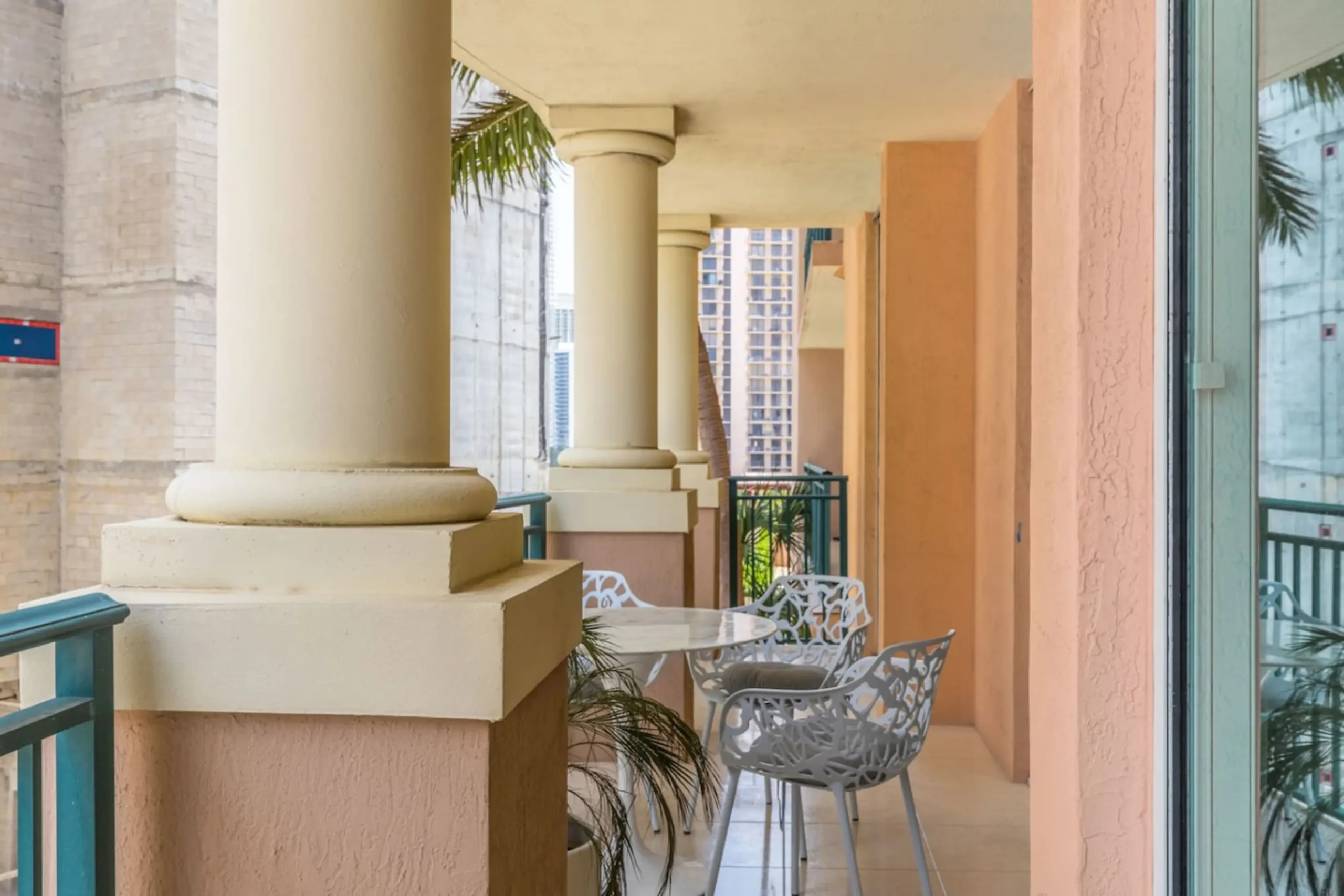 Partially covered by the building, this apartment allows enjoying some shade after a long day at the beach.  A Den makes you and your family/friends feel comfortable and not space-limited, while the fully equipped kitchen will bring your cooking abilities to the next level or let our local restaurants do the magic for you. Enjoy splashing and sunbathing at the pool located just one floor below. Washer and dryer in the apartment will keep your clothes fresh while free Wi-Fi and smart TV will keep you connected to everything you desire.